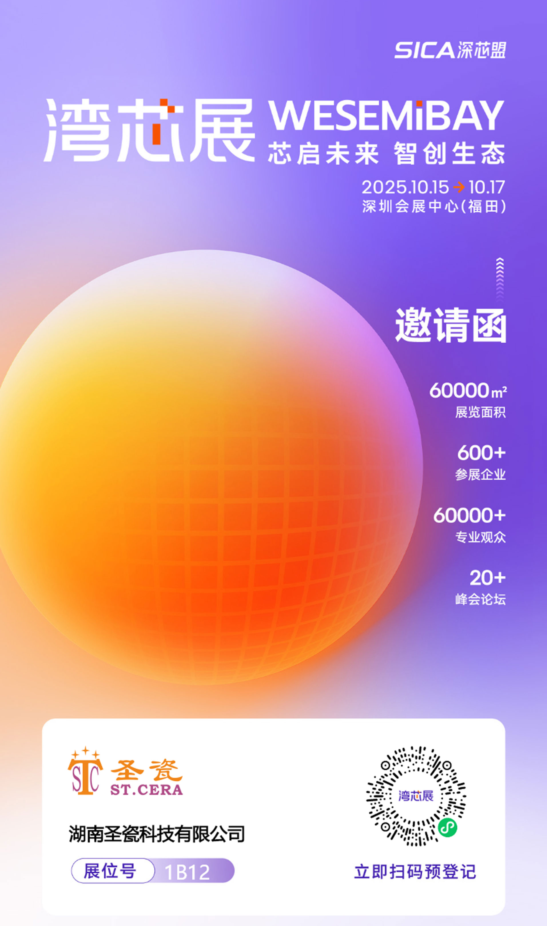 第二屆“灣芯展”——2025灣區半導體產業生態博覽會(深圳),如期將至,湖南圣瓷科技有限公司,誠邀您蒞臨指導!